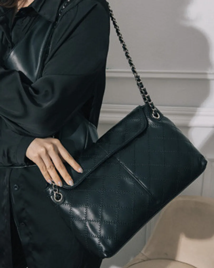 真皮小香菱格車線鍊條肩背大包