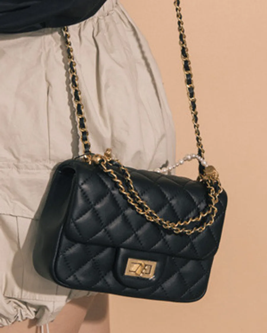真皮小香風金鍊條菱格紋翻蓋小包