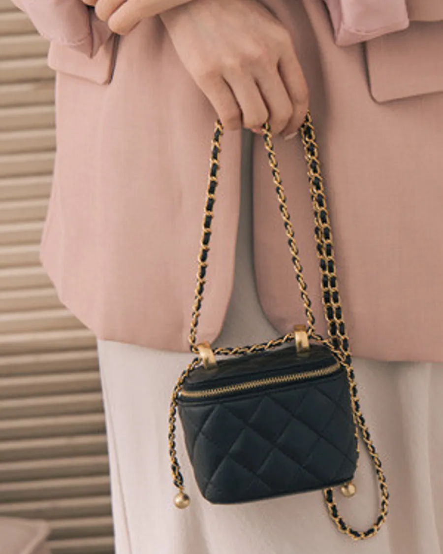真皮小香風菱格車線金屬鍊條小方包