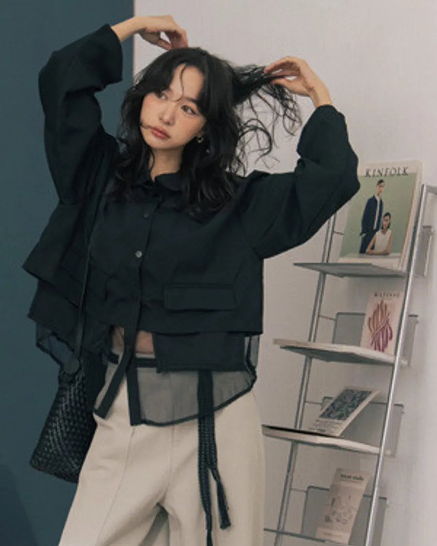 設計款拼接透紗下擺襯衫