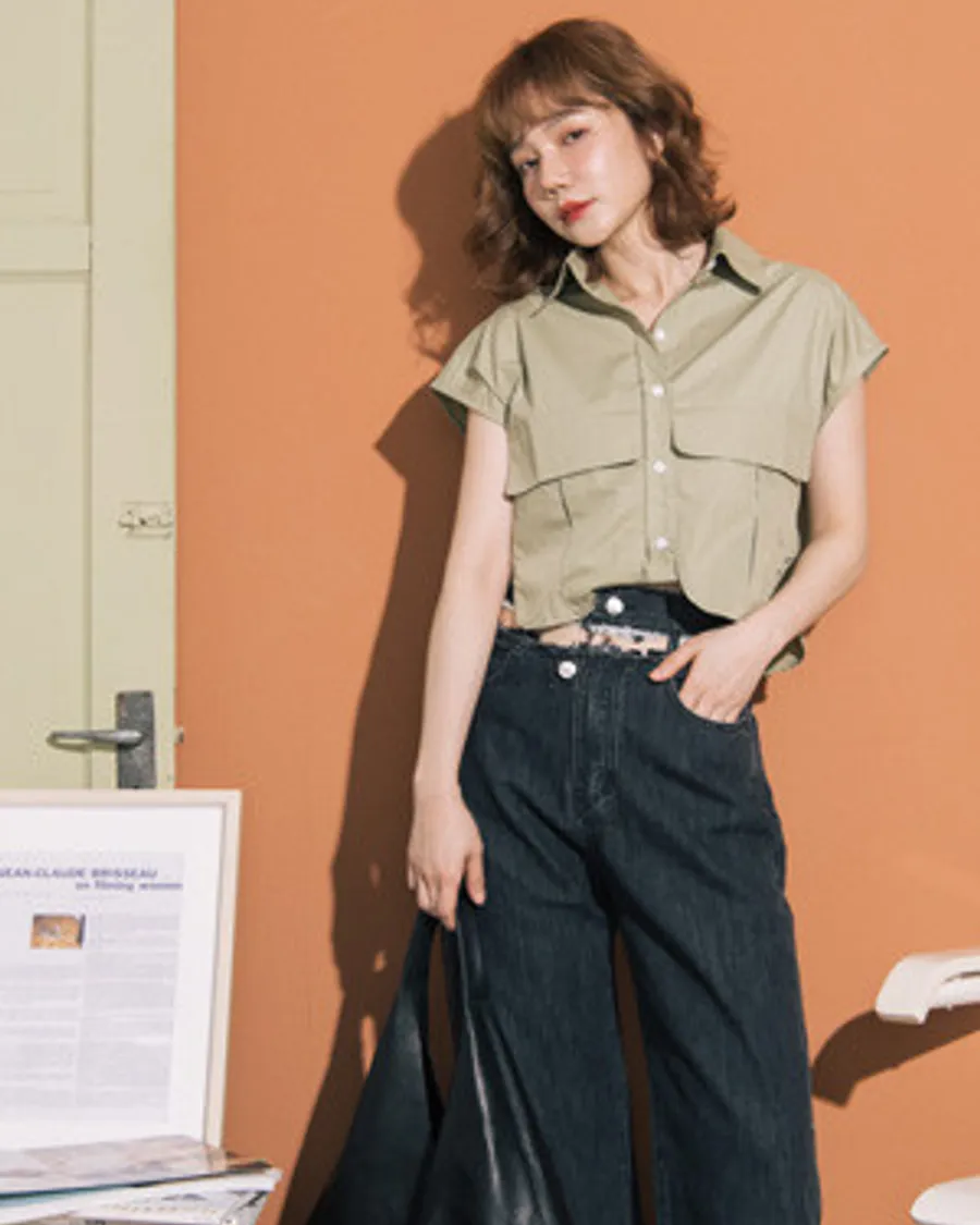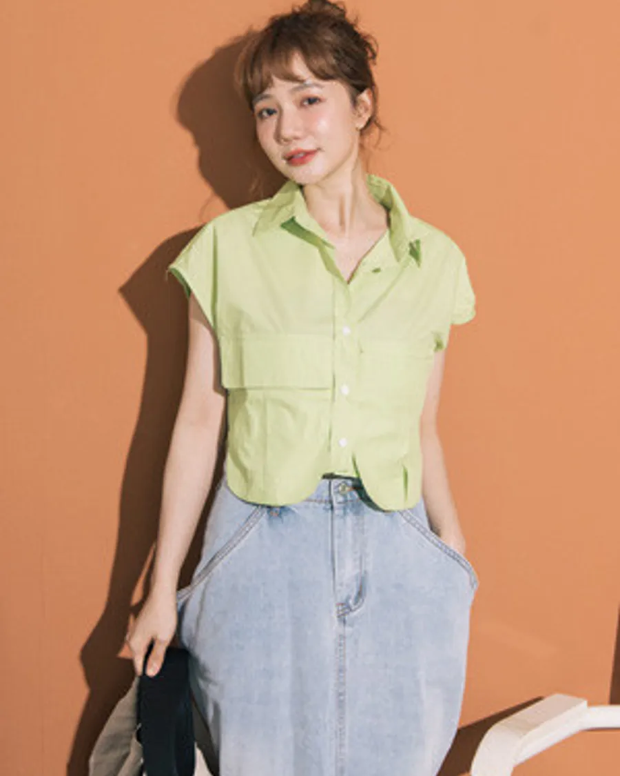 ▲限時搶購480▼立體雙口袋剪裁半袖襯衫