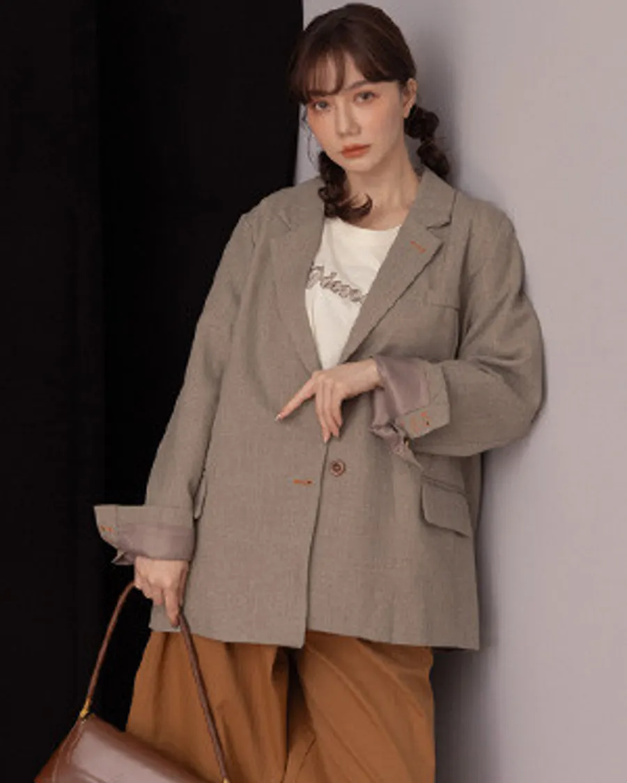 設計款翻領撞色排釦寬鬆感西裝外套