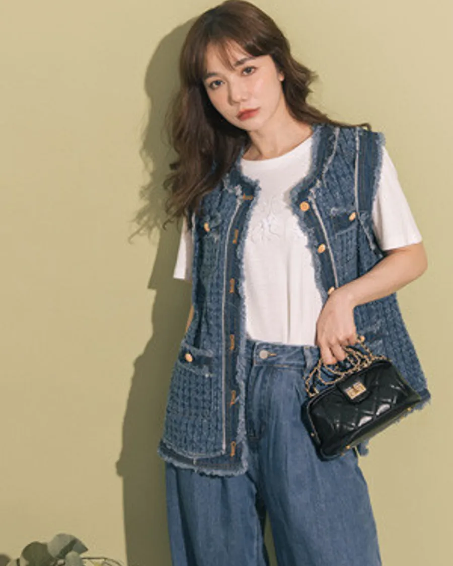 小香風貓鬚織紋牛仔背心