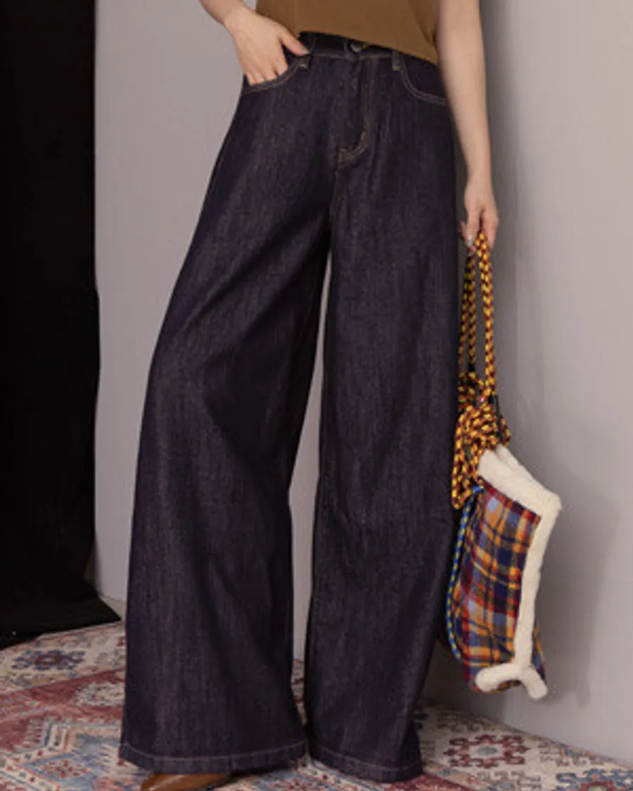 車線寬口落地牛仔長褲