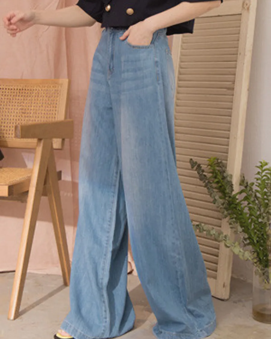 刷色牛仔寬口長褲