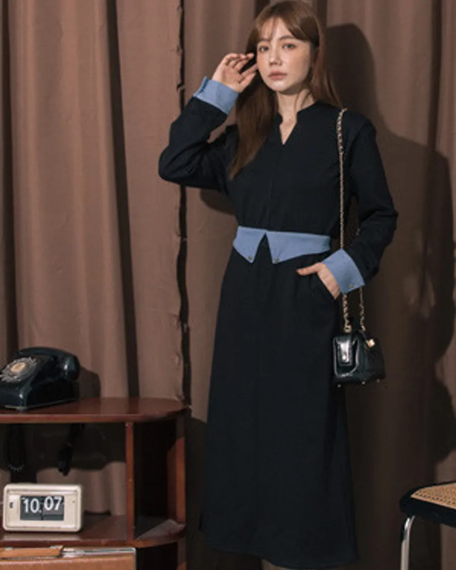 特殊撞色拼接上衣+長裙絲光太空棉套裝