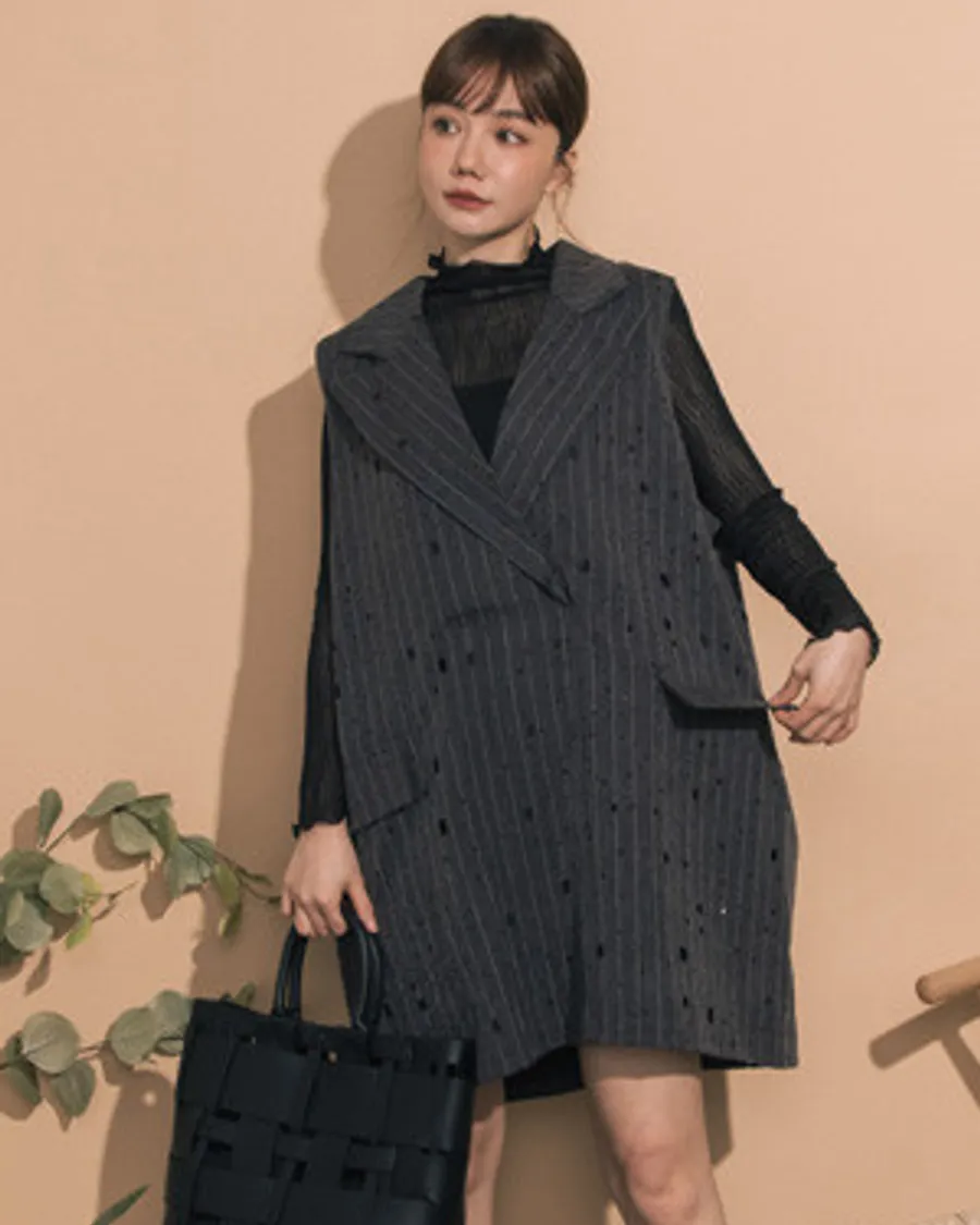 設計款簍空亮鑽翻領西裝式小洋裝